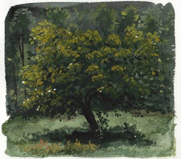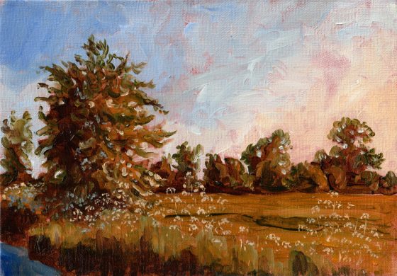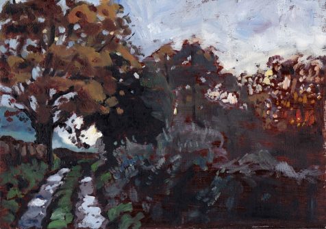 Church Corner Cottage, Playford, Suffolk, May-June 2022, oil on board, 8″ x 6″, commissioned by Victoria Bunbury as a present for her mother, who lives there with her cats, and reproduced here by her kind permission.