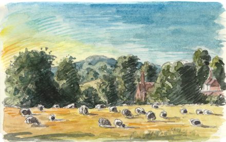 6″ x 4″ greetings cards showing an original watercolour by Anthony Adolph of the astonishing Arthur’s Stone dolmen near Dorstone, Herefordshire. Said in local folklore to have been the burial place of King Arthur, this genuinely ancient Neolithic dolmen has been the subject of ongoing archaeological digs in the 2020s that have already revealed an associated stone circle and two avenues of post holes. £3.00 each including envelope, UK postage free.